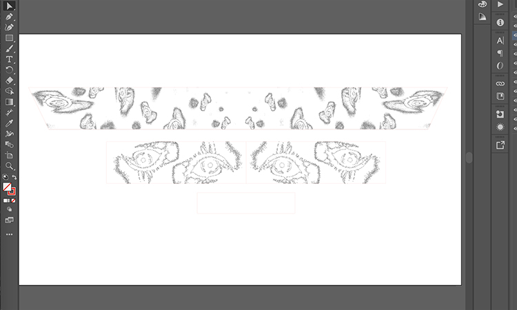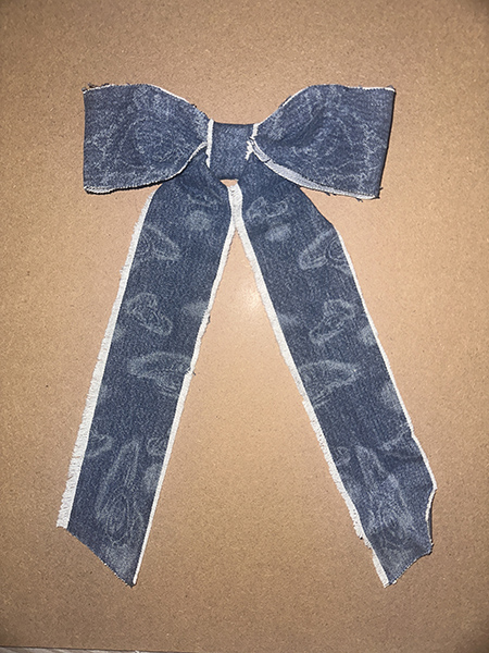 For Project 2, I laser cut a pattern of eyes into a denim hair bow as a play on the saying "eyes in the back of your head." To create the pattern, I used a photo I took of my eye with a boca effect and then inverted the image. Then, I used the bitmap function in photoshop to create image that could be laser cut onto a surface. Then, I duplicated my image to create a pattern and resized the image into various positions on my bow template. I used the denim settings on the laser cutter to cut my pattern into the denim. However, the laser cutter setting was not as strng as I hoped and the pattern showed up nevr lightly on the bow. I definitely want to play around with the settings on the laser cutter more in the future to figure out the best settings to engrave denim!