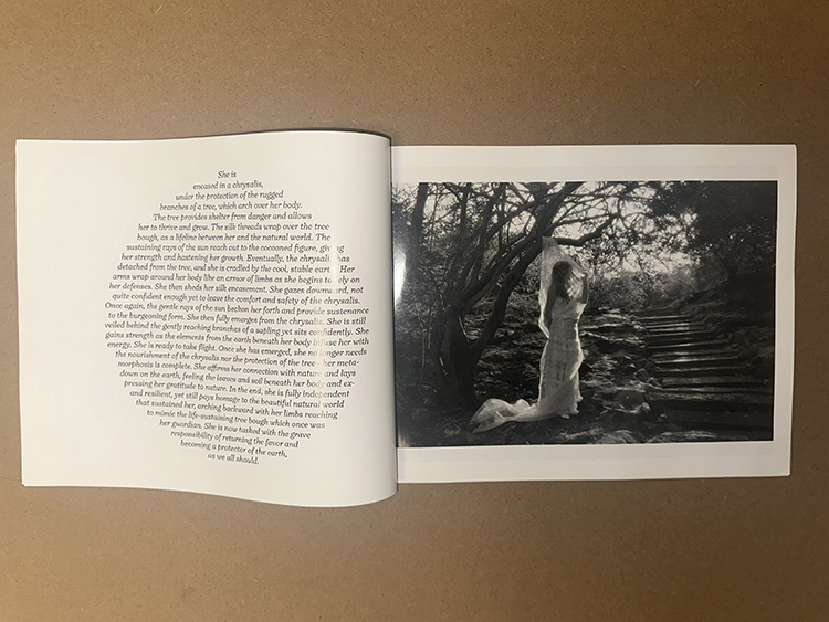 For my Final Project, I created a photo book. The story of the vital and delicate interdependence between humans and nature is told through the photographic series, Metamorphosis. The series explores the relationship between a girl and the natural world that sustains her, mimicking the lifecycle of a butterfly. The series celebrates the essential bond between humans and nature as we see nature protect the girl and help her thrive. In return, the girl repays the favor and becomes a protector of the earth. I took these photos this past weekend while filming a project from my Foundation Media Class. The photo series takes photos and stills from the "dream" portion of the film to tell a story that is not fully explored throughout the film as the film focuses mainly on a differet plot line. I find it fascinating how different stories are better told through different mediums.